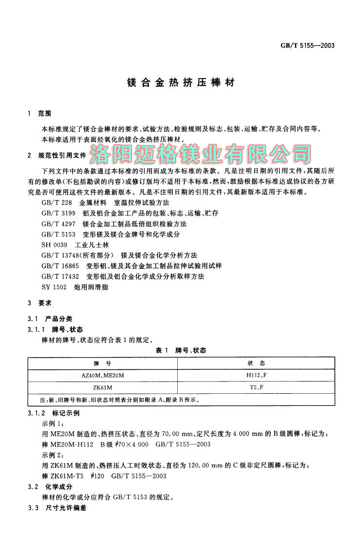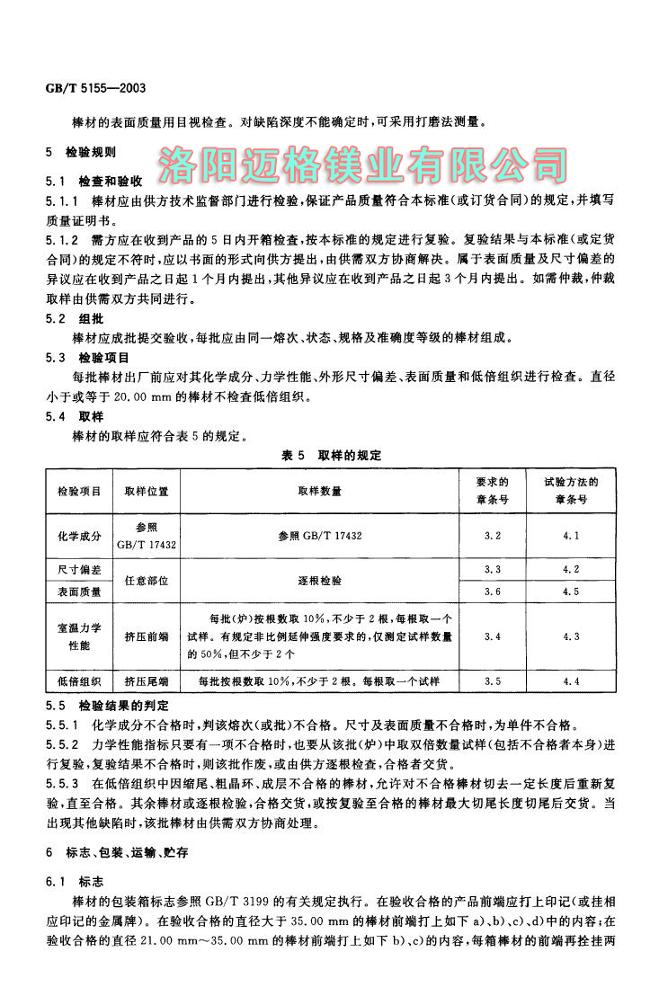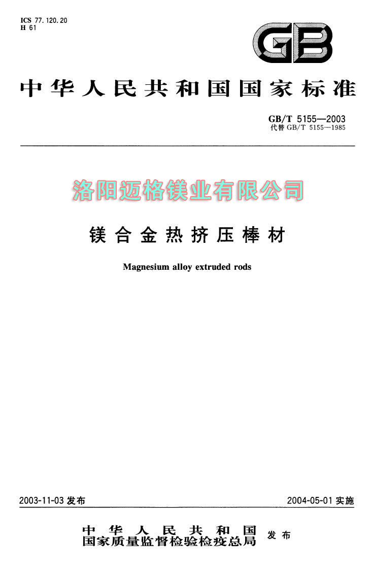 GBT 5155-2003 镁合金热挤压棒