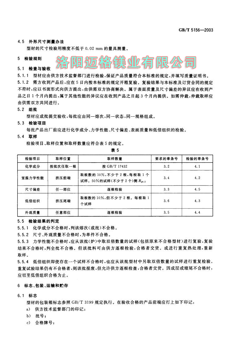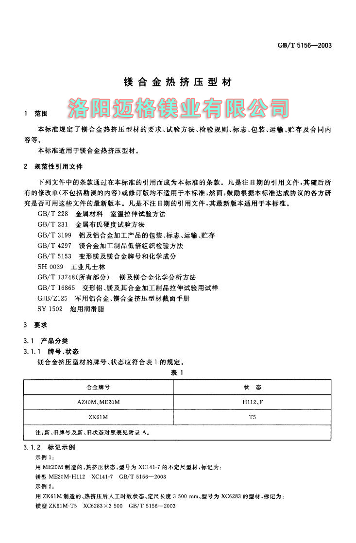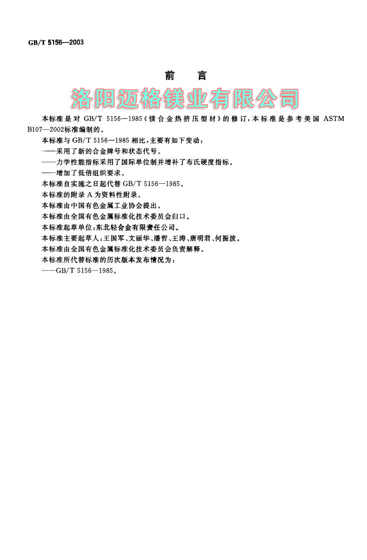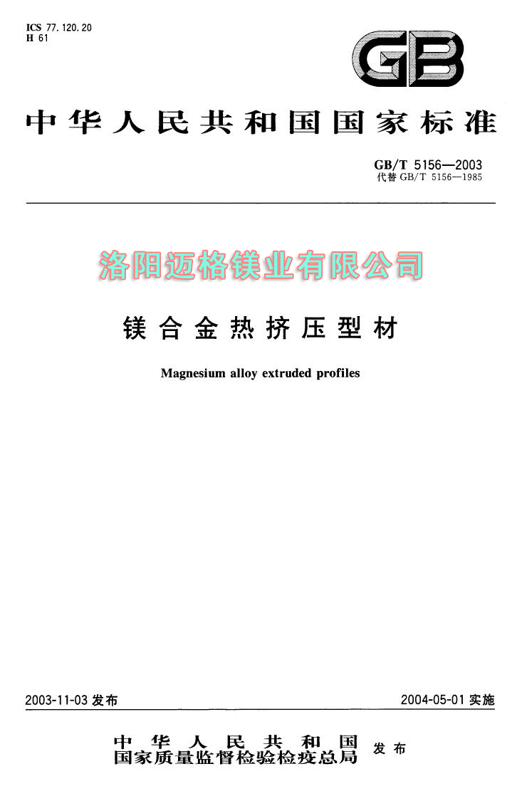 GBT 5156-2003 镁合金热挤压型材